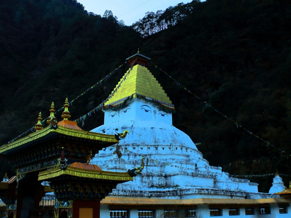 Explore peaceful Monpa villages surrounded by pine forests and mountains before returning to Tawang.