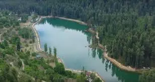 Lake turns crystal blue under sunlight